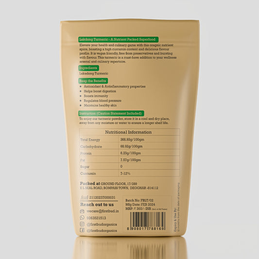 First Bud Organics Golden Spice Lakadong Turmeric Powder - 250gm