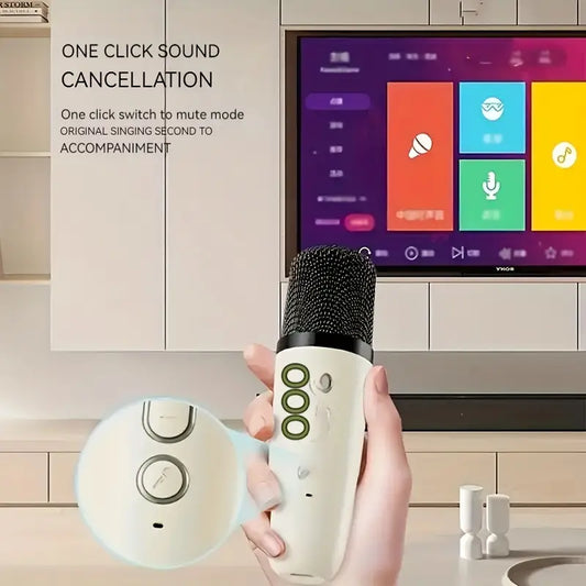Karaoke Bluetooth Speaker with Led Lights and Wireless Microphone-Beige
