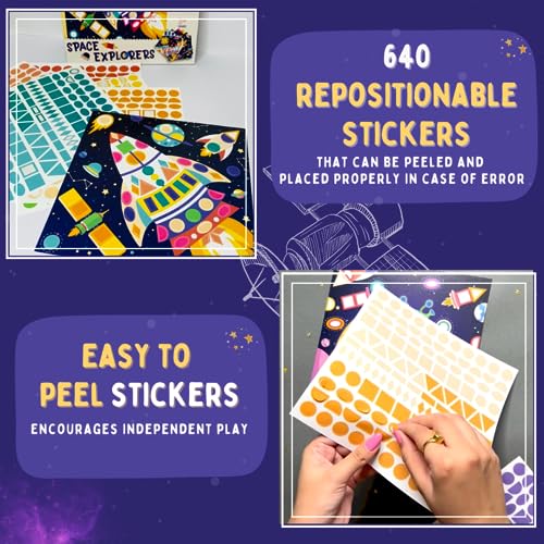 PepPlay Shape Sticker-Space Theme, No Mess Art & Craft for Kids, DIY Activity, Gifts for Ages 3 to 7, Paint by Sticker, Learn Shapes & Colours, Easy to Peel, Reusable, 650 Stickers