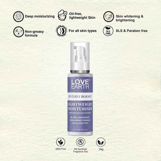 LOVE EARTH HYDRO BOOST LIGHT WEIGHT MOISTURIZER FOR OIL-FREE, LIGHTWEIGHT & NON-GREASY FORMULA FOR ALL SKIN TYPES - 50GM