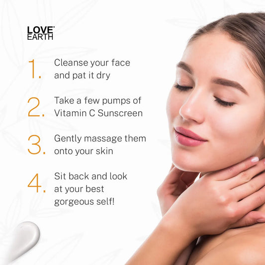 Love Earth Vitamin C Sunscreen SPF-50 For Sun`s UVA, UVB Ray Protection With Vitamin C & Essential Oils For All Skin Types 50ml