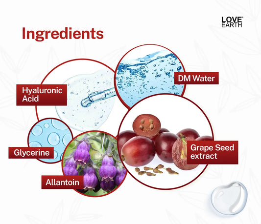 Love Earth Hyaluronic Acid Toner with Grape seed extract and Hyaluronic Acid for Wrinkle Free, Smooth and Glowing Skin 100ml