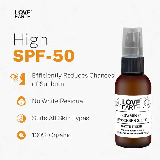Love Earth Vitamin C Sunscreen SPF-50 For Sun`s UVA, UVB Ray Protection With Vitamin C & Essential Oils For All Skin Types 50ml