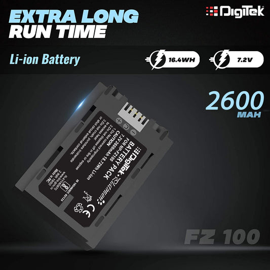 Digitek (FZ-100) Platinum FZ-100 2600 mAh Secondary Rechargeable Lithium-ion Battery for Sony Digital Camera, Compatibility - for Alpha a9 II, Alpha a9, Alpha a7R IV, Alpha a7R III, Alpha a7 III,