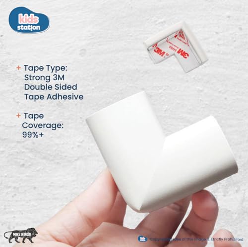 KIDS STATION™ Baby Proofing Corner Guard for Kids Safety, Minimal Wrinkle, Zero Damage to Furniture Upon Installation, Made in India (60g/mt Dense, 4 pcs, L- Shape, Off-White)