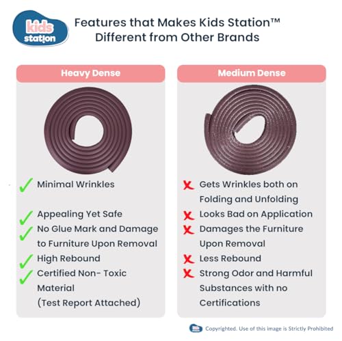 KIDS STATION™ Baby Proofing Corner Guard for Kids Safety, Minimal Wrinkle, Zero Damage to Furniture Upon Installation, Made in India (60g/mt Dense, 10 pcs, L- Shape, Brown)