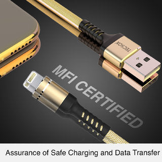 TecSox TecWire Lightning End Braided Fast Charging Cable Compatible for-iPhone with MFI Certified (1 Meter, Gold)