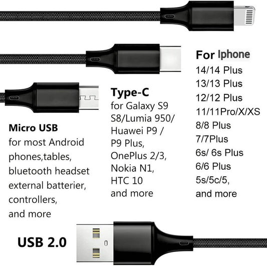 LA' FORTE 3 in 1 Charging Cable (Micro, C & Iphone Connectors)-Pack of 2