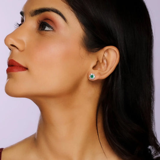 Silver Dark Green Flower Earrings