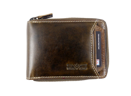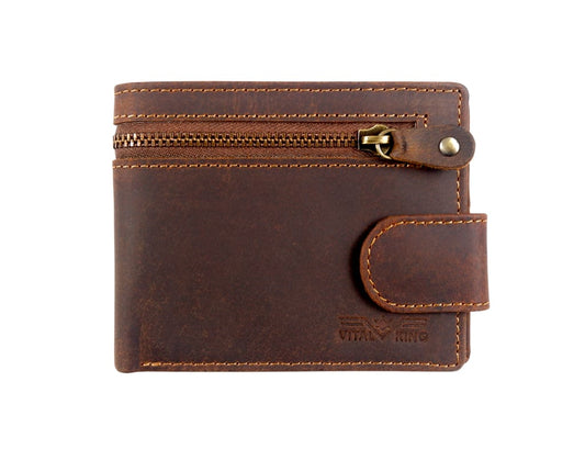 Vital King Men Travel Brown Genuine Leather RFID Wallet (9 Card Slots)