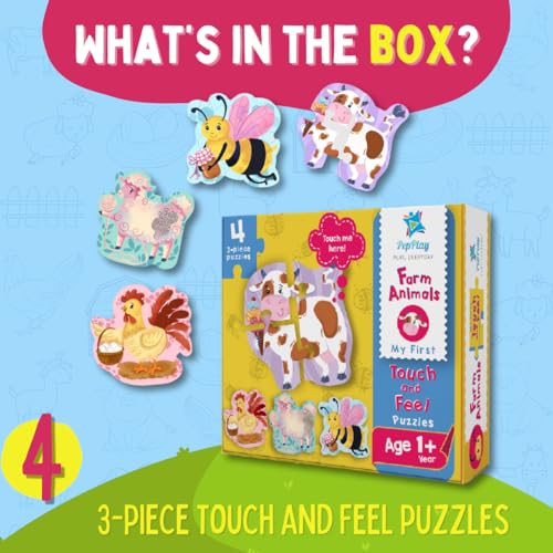 My First Touch and Feel Puzzle – Farm Animal, Three Piece Puzzle Learning for Toddlers, Educational Toy for Pre-School and Montessori Kids, Birthday and Return Gift for 1-4 Years Old