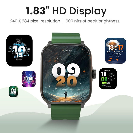 CELLECOR M1 STEW 1.83" BT Calling Smartwatch, Split Screen, 500 NITS, AI Voice Assistant, 120+ Sports Modes, SpO2, HR, IP67, Multi Games