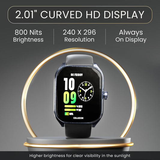 CELLECOR M10 Vision 2.01" Super-Retina Amoled Display | 1200 NITS | AOD | BT-Calling | AI Voice | 60Hz Refresh Rate | IP68 | Rotating Crown | SmartWatch