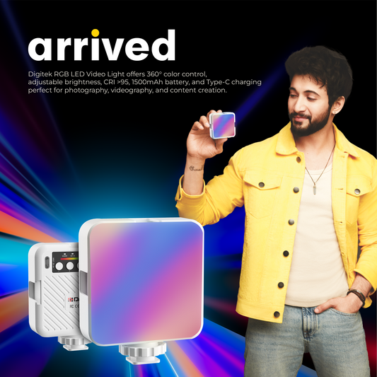 Digitek (LED-D6W RGB) Portable Mini RGB LED Video Light with inbuild Battery & 360° HSI, 3000K-6000K, 8-Level Control, 9 Special FX Modes, Type-C Charging, 2hr Battery, for Photography & Videoshoots