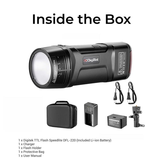 Digitek (DFL 220) Handheld TTL Flash Speedlite, 2s Recycle Time, 5600K Color Temp, 1/18000s High-Speed Sync, 32 Channels, 9 Stop Power Range, TTL/Manual/Multi Modes, Lighting for Indoor/Outdoor S