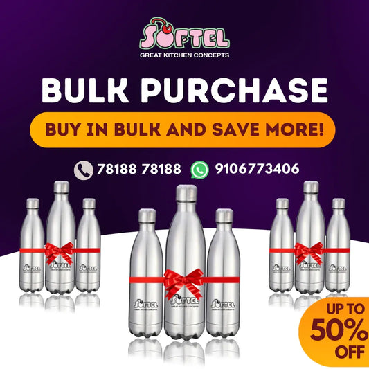 Softel Stainless Steel 1000 ML Vacuum Bottle | Hot & Cold | Silver | 1 Pc