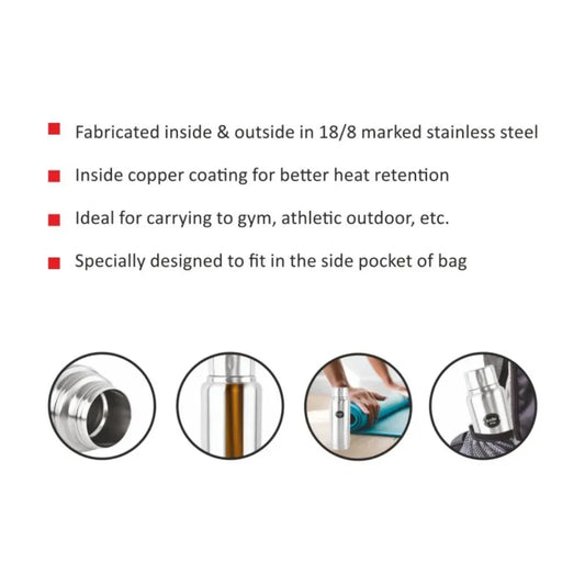 Cello Vigo Stainless Steel Vacusteel Water Bottle | 1 Pc Silver