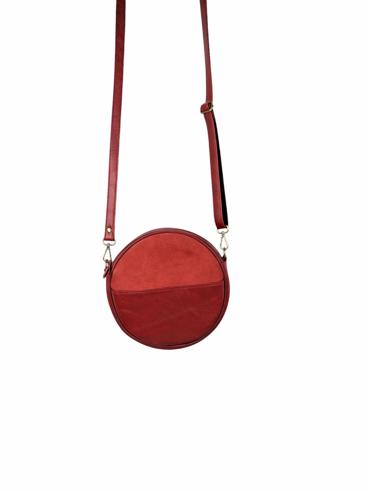 A very stylish sling bag round in shape made from genuine leather with high quality fittings and zippers. Has 1 big compartment and 1 zip pocket inside and 1 zip packet outside. We are the manufacturers of genuine leather products. Our products are hand made from high quality premium leather with fine quality fittings. Our products range includes men's wallets, ladies wallets, laptop bags, laptop sleeves, executive bags, vanity bags, sling bags, watch cases, jewelry cases, table accessories like pen stand, tissue paper holder, mouse pad etc. and many more innovative products. We have more than 25 years of experience in manufacturing. We are trusted by customers and it is reflected in our Google ratings also.