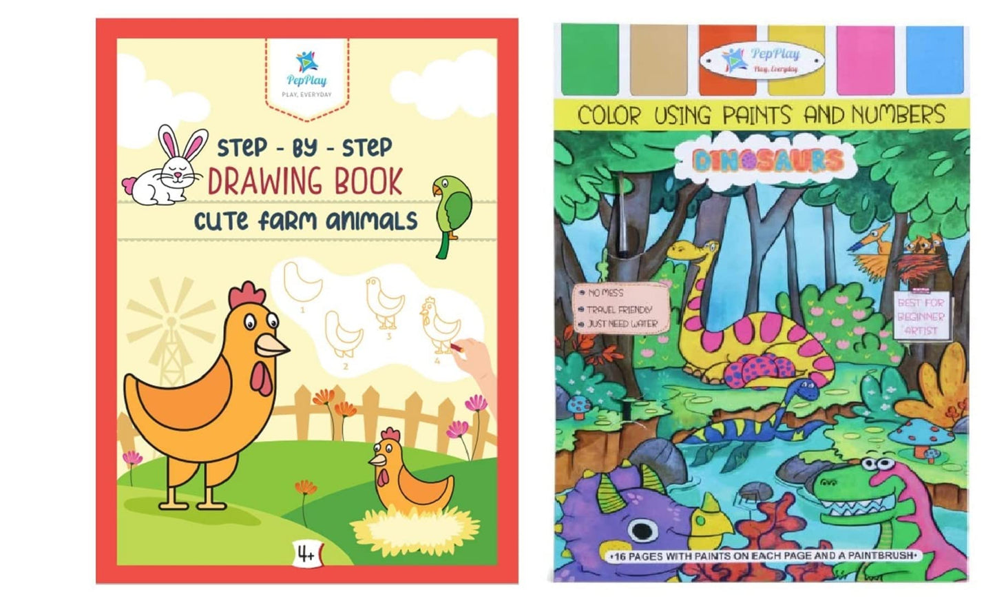 PepPlay Colouring Book for Kids Color Using Paints & Numbers + Drawing Book Cute Farm Animal (Combo) | Educational Sketch Books Gift for Kids (3 to 6+ Years)
